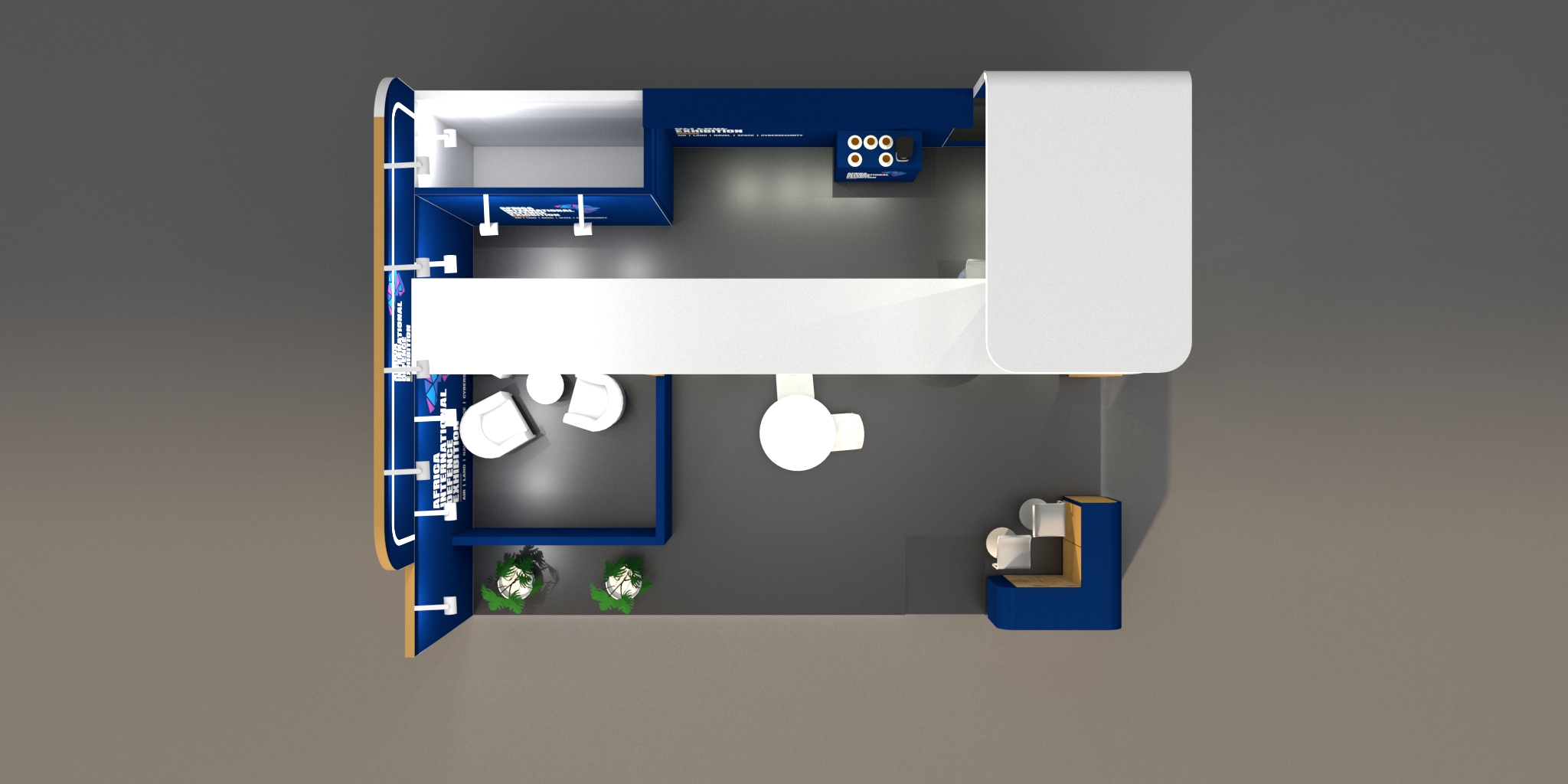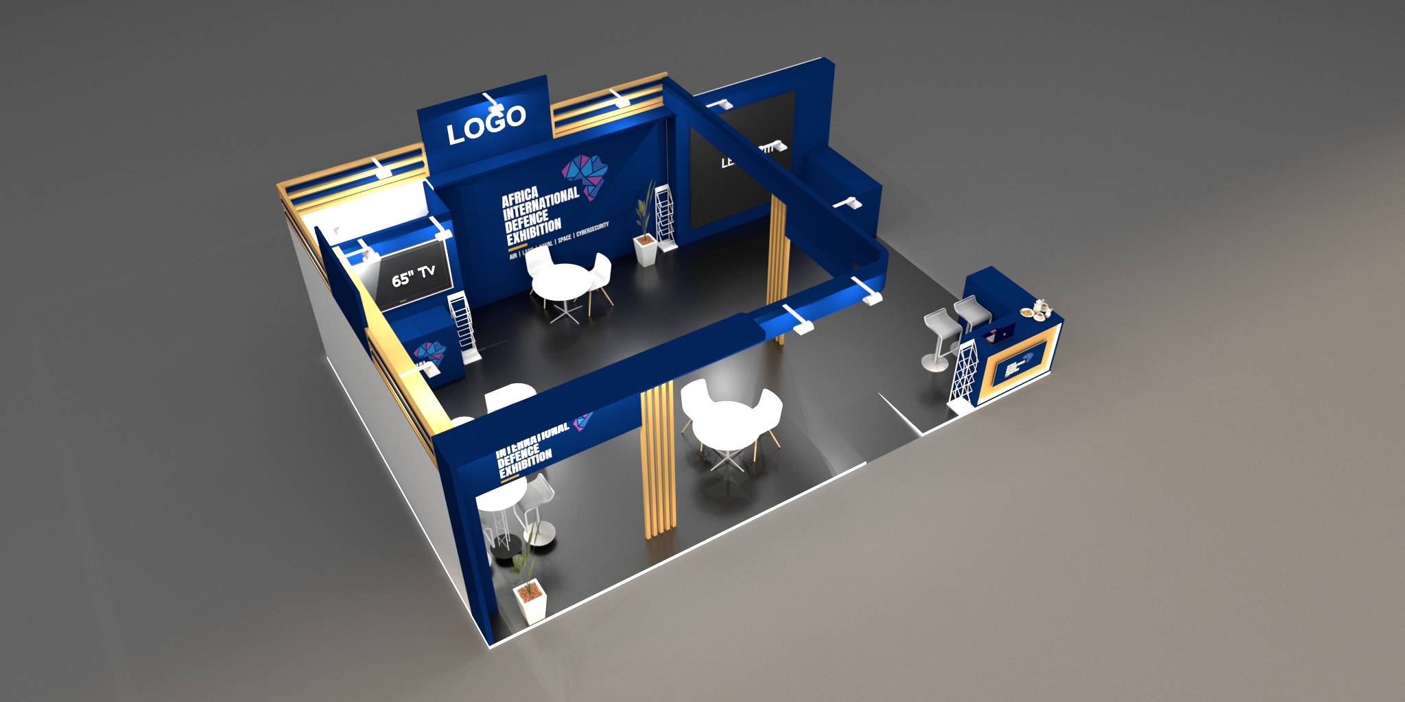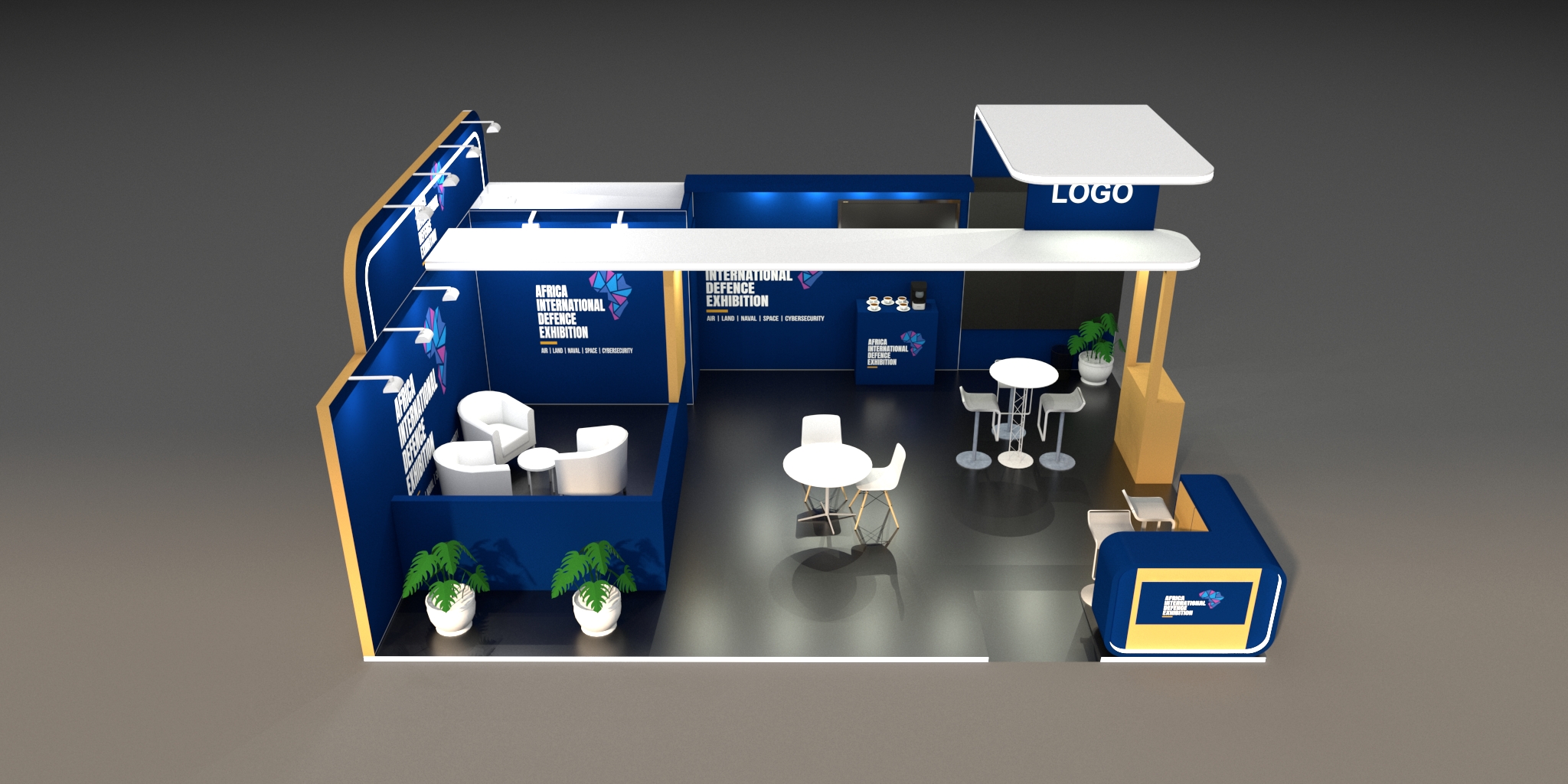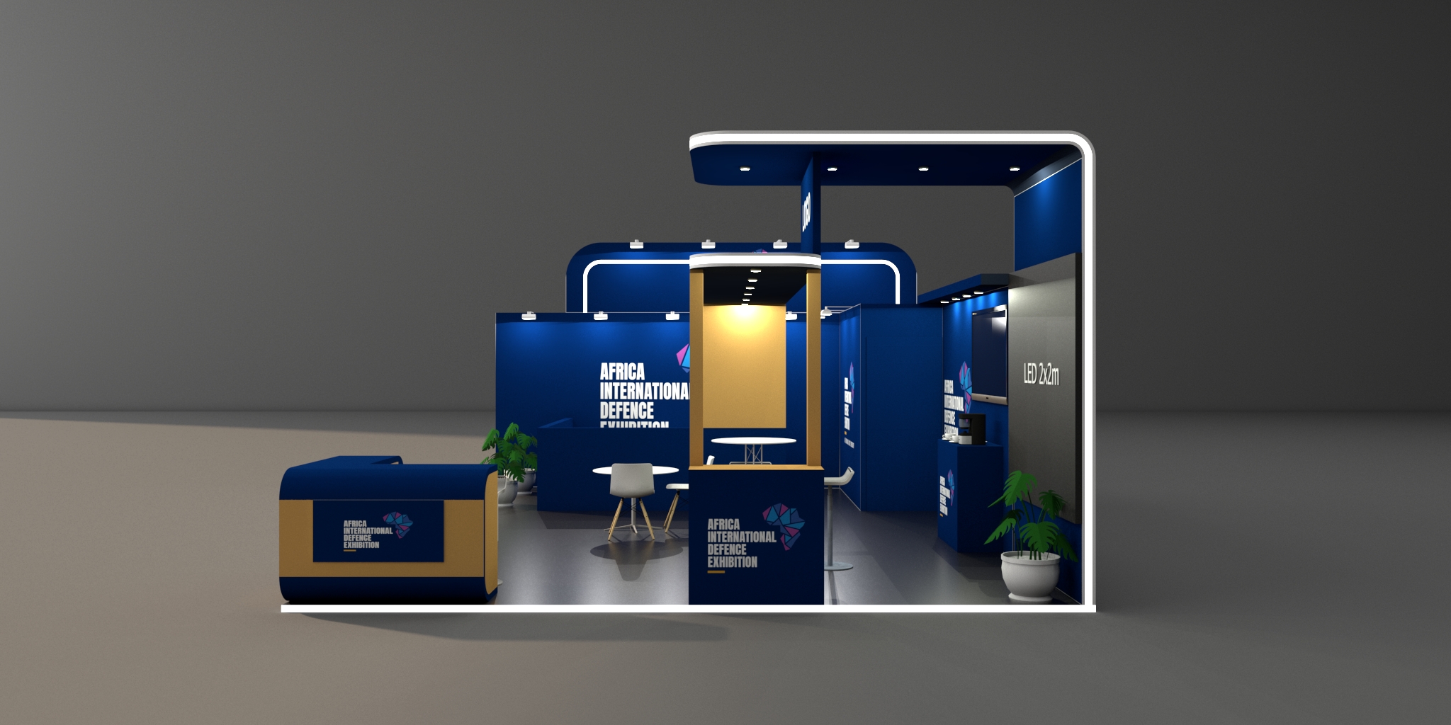 - Branded seamless walls with lit maxima square poles