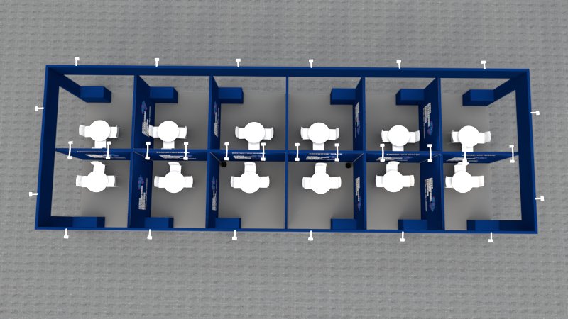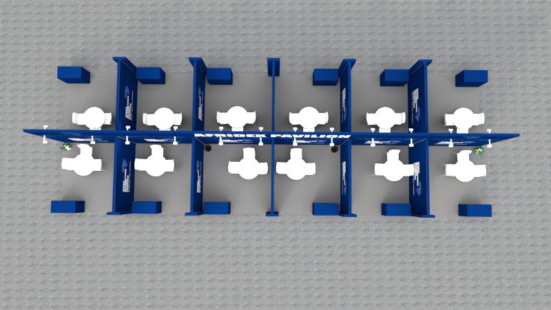 Alternative pavilion configuration offering flexible exhibitor clustering.